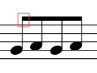 The beam-value type represents the type of beam associated with each of 8 beam levels (up to 1024th notes) available for each note.