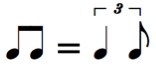 textBlackNoteShortStem, textCont8thBeamShortStem, textBlackNoteFrac8thShortStem, space, =, space, textBlackNoteShortStem, textTupletBracketStartLongStem, textTuplet3LongStem, note8thUp, textTupletBracketEndLongStem